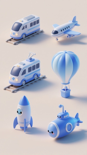 哆啦A梦,皮肤光滑,它坐着有金属质感的时光机在天空中飞驰,周围环绕着:白云,小鸟,蓝色天空背景,有太阳