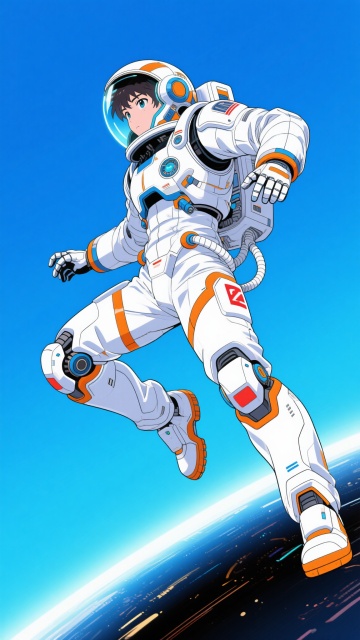 复古风赛博朋克,高科技机械感。动漫插画特质,轮廓清晰且富有张力,角色姿态充满动感,科幻硬核感与动漫的生动性。高饱和度的色彩搭配