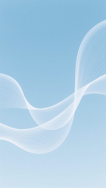 极简主义风格抽象背景,柔和的渐变色调与光滑细腻的材质感,画面中央是流畅弯曲的线条构成的动态波浪形态,具有强烈的视觉引导性和韵律感,整体呈现出宁静、科技感与未来感的氛围,光线从波浪曲线的转折处柔和地反射出来,形成微妙的高光与阴影对比,背景采用大面积的留白设计,简洁而富有空间感,变换为带有细腻网格纹理的磨砂质感,配色调整为清新的淡蓝色与浅灰色渐变,保持原有的极简设计美学和动态线条结构。