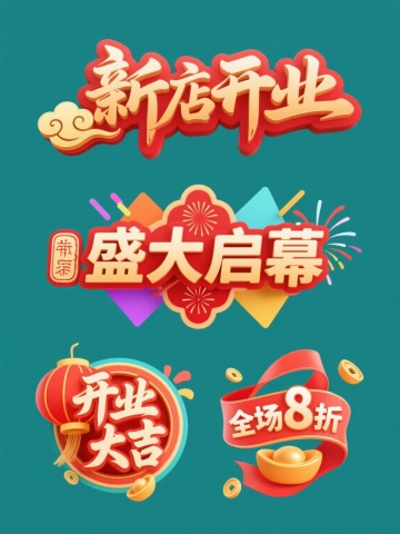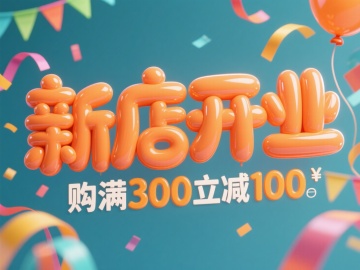3D风格促销海报,金色大字突出新店开业优惠,简洁明了吸引眼球。