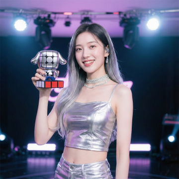 霓虹灯下,粉色双马尾少女手持荧光棒,银色上衣闪耀,尽显潮流甜美动漫风。