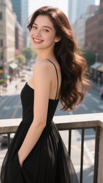 高清晰人像摄影,白色纯净背景,一位欧洲年轻女性,侧脸微微上扬,笑容明媚,眼神明亮有神,棕色与黑色渐变的长卷发随风飘逸,发丝纹理清晰,穿着白色吊带裙外搭宽松白色外套,左肩自然露出,肌肤白皙细腻有光泽,柔和的顶光照明,面部光影过渡自然,阴影柔和,高光点缀在发丝和肩部,整体氛围清新、阳光、优雅,画面简洁干净,主体突出