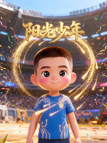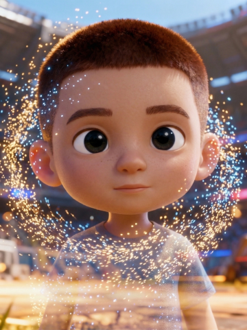 卡通感3D角色在绿茵场疾驰,光影交错间展现热血竞技瞬间,虚拟现实风格强化体积感与动感氛围。