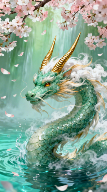 鎏金巨龙腾云而起,3D重拟物风格尽显金属质感与体积感,光影交错中透出神圣与奢华,虚拟自然背景烘托东方神韵。