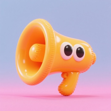 简约现代风格3D图标,单个喇叭元素居中规整排布,喇叭造型设计独特,主体为鲜艳的[可替换颜色],喇叭开口边缘和手柄为[可替换颜色],喇叭口内侧为[可替换颜色],侧边有三个渐变的[可替换颜色]三角形声波图案,纯色背景,无文字,无logo,无水印,整体造型圆润简洁,具有光滑的塑料质感,光影柔和,立体感强。
