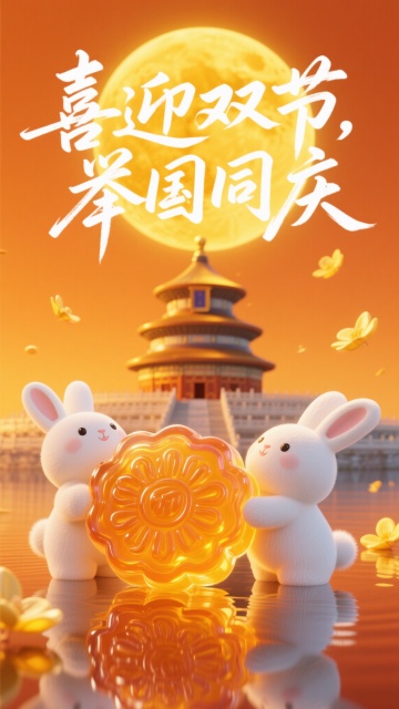 软3D风卡通女孩在国潮建筑间自拍,清新梦幻,国庆黄金周主题,充满可爱与旅行乐趣。