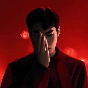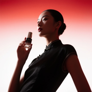 背景有大片如红色烟雾般晕染开的红色效果,少量留白。整体时尚富有艺术感。