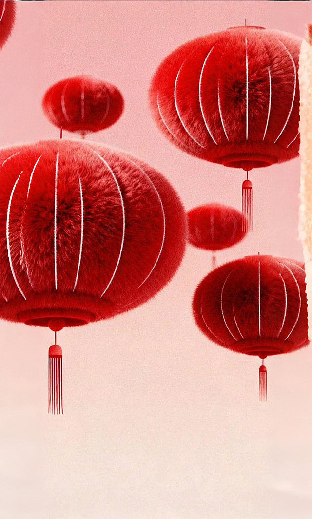 “极简插画,虚实结合,模糊泛红颗粒肌理,红色底,单一的纯色背景,模糊感+颗粒感+肌理感+朦胧感,清新淡雅,治愈配色,色彩冷暖对比强烈,强调梦幻温暖的氛围感,微光,隐约看出很多灯笼,非传统构图方式,动态模糊,动态模糊,自序,艺术,高级的氛围感,细腻质感”详情
