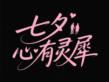 黑色背景配粉色大字,双色设计风,浪漫甜美,七夕主题。