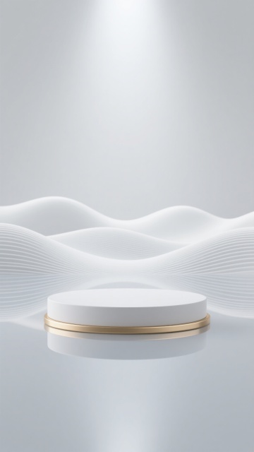 3D渲染的写实风格展台,具有纹理的淡蓝色表面,柔和的高光和微妙的阴影细节,呈现出统一而富有变化的视觉效果,圆形双层结构,简洁现代,光线均匀,立体感强,清新色调,画面干净,白色圆形展台,简洁现代设计,双层圆形结构,底部较宽顶部略窄,表面光滑带有细微纹理,柔和均匀的光线照射,顶部边缘有自然高光,底部边缘有微妙投影,整体立体感强,画面干净留白充足,极简主义设计风格,高分辨率渲染,材质表现细腻,阴影过渡自然。