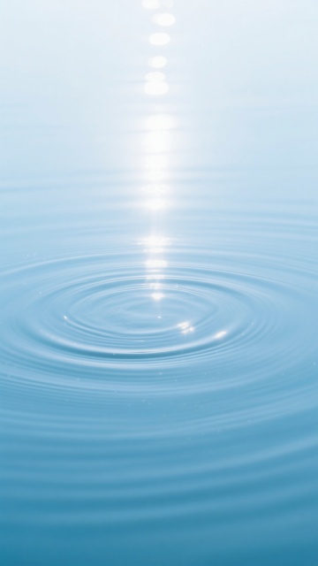 清澈见底的浅蓝色水面,阳光照射下波光粼粼,水面上荡漾着层层叠叠、柔和而富有动感的涟漪波纹,光线在水中折射出明亮的光斑和微妙的光影变化,整体呈现出宁静、清新、通透的氛围,具有高清晰度的摄影质感,色调以纯净的浅蓝色为主,光影自然柔和,水纹细节丰富且层次分明。