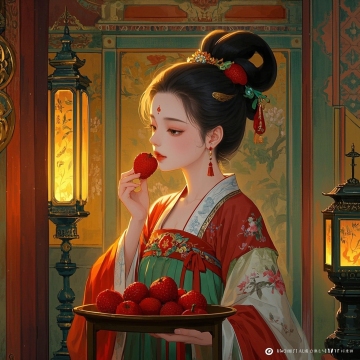 月下嫦娥执灯,玉兔相伴,工笔与轻拟物交融,鎏金水彩晕染,古典中式意境中透出梦幻浪漫,静谧唯美的中秋夜景。