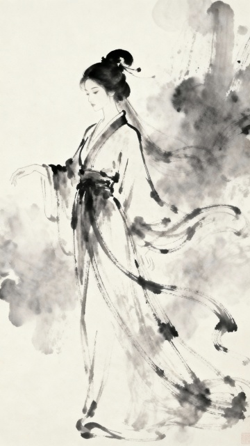 古典美人,工笔细腻描绘,水墨淡雅渲染,尽显古韵风华。