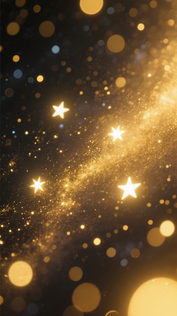 深邃的宇宙星空背景,闪烁的星辰和柔和的星云光晕,整体氛围为黑金,高贵,静谧而富有未来感,金色星空背景细腻质感