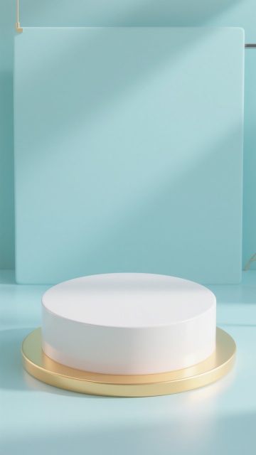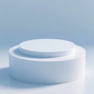 3D渲染的写实风格展台,具有纹理的淡蓝色表面,柔和的高光和微妙的阴影细节,呈现出统一而富有变化的视觉效果,圆形双层结构,简洁现代,光线均匀,立体感强,清新色调,画面干净,白色圆形展台,简洁现代设计,双层圆形结构,底部较宽顶部略窄,表面光滑带有细微纹理,柔和均匀的光线照射,顶部边缘有自然高光,底部边缘有微妙投影,整体立体感强,画面干净留白充足,极简主义设计风格,高分辨率渲染,材质表现细腻,阴影过渡自然。