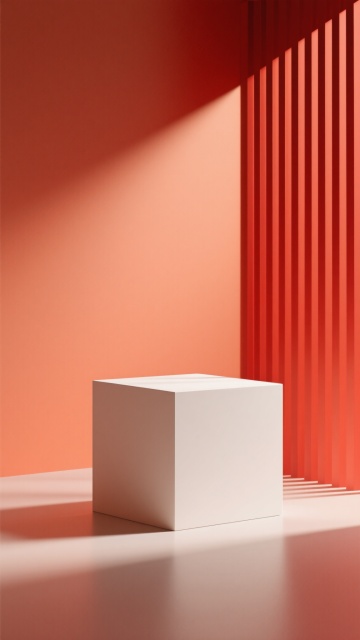 极简主义风格的白色台阶,由多个几何块状白色台阶组成,台阶表面带有细腻的磨砂纹理,柔和的侧上方光线照射在台阶和深灰色背景墙上,形成清晰锐利的光影交错效果,光线在台阶侧面和背景墙上投射出明显的阴影线条,整体画面呈现出宁静、简约、现代的氛围,具有强烈的立体感和空间层次,色调以白色台阶与深灰色背景形成鲜明对比,光影关系明确,质感细腻。