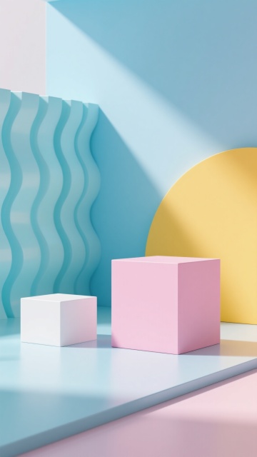 电商商品展台模型底图,几何肌理,浅蓝色系,主体为矩形展台,简洁的几何结构,画面构图和谐,高反光材质,极简风格,留白充足,光线柔和