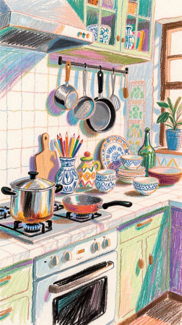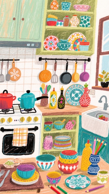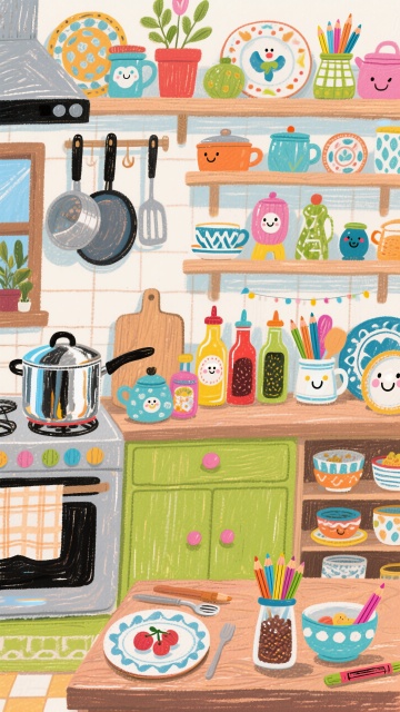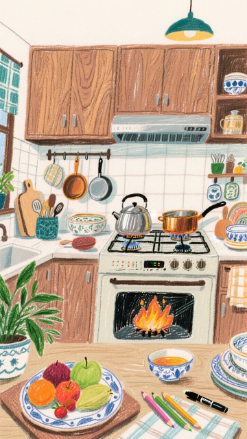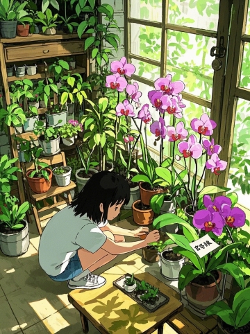 水彩风插画,手账风布局,绿植与花卉点缀温馨室内,清新文艺感十足,营造舒适惬意的居家氛围。