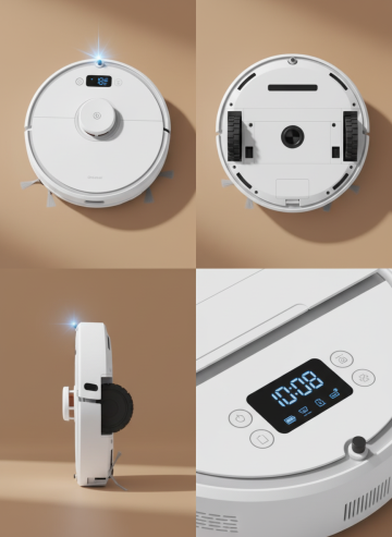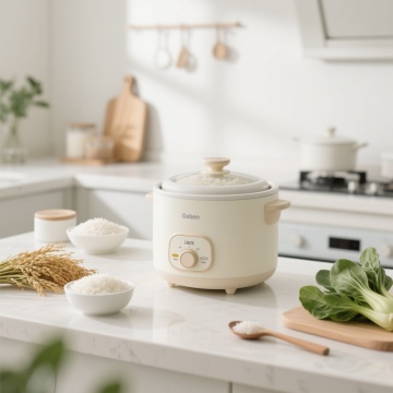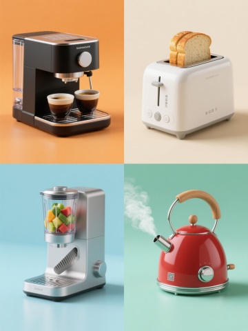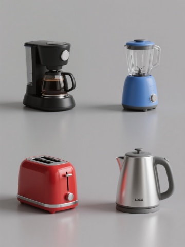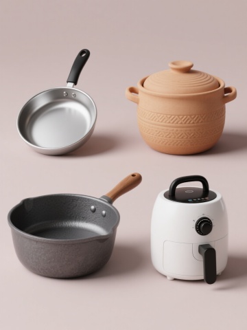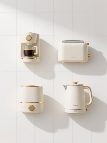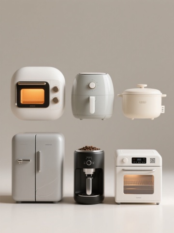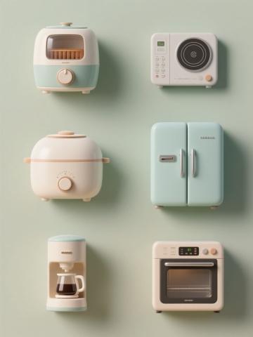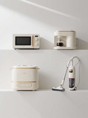 一个现代风格的电饭煲产品展示图,整体采用简约设计语言,主体为圆柱形结构,顶部为平面设计,带有微凹的开盖按钮和一个细长的蒸汽孔。机身正面有一个矩形控制面板区域,内有数字显示屏和多个功能按键,按键上有简洁的中文标识。产品采用不同配色方案,包括哑光白色与浅灰色渐变、磨砂质感的淡蓝色、珍珠光泽的米白色,以及带有细腻拉丝纹理的浅香槟金色等多种浅色基调的材质。整体造型线条流畅,边角圆润,体现出现代家电的精致感与科技感。背景为纯净的浅色(如浅灰色或乳白色),采用柔和的正面光源,光线均匀分布,在产品底部形成轻微的阴影,突出主体的立体感和材质细节,整体画面干净整洁,具有清晰的产品展示效果,类似专业的电商产品白底图风格,无任何文字、LOGO及多余装饰元素。
