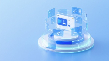 科技感十足的3D风设计,虚拟现实界面环绕中央屏幕,展现未来科技魅力。