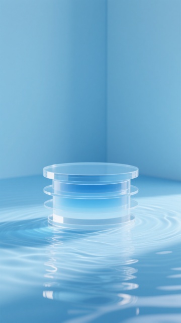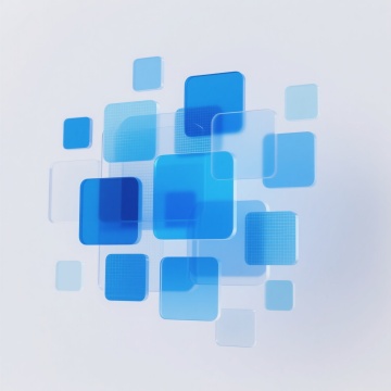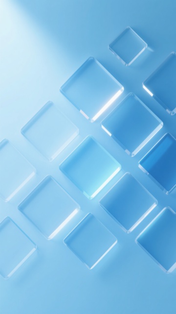 一张以蓝色为主色调的简约现代背景图,画面中由多个透明的几何形状——主要是不同大小的菱形和多边形——以不规则的方式排列,它们具有光滑的边缘和轻微的玻璃质感,表面反射着柔和的光线,整体呈现出一种轻盈、通透且富有层次感的视觉效果,色彩从浅蓝到中蓝渐变过渡,光线从左上角斜射下来,在几何形状的边缘形成淡淡的高光,背景为纯净的浅蓝色,营造出宁静、科技感与未来感兼具的氛围。