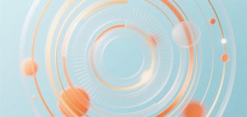 淡蓝色为主色调,融合其他丰富辅助色,复杂精致的立体圆弧、曲线、线条模型元素,现代UI界面浅色背景,科技感,透明玻璃质感,多层次叠加,发光粒子点缀,精致细节