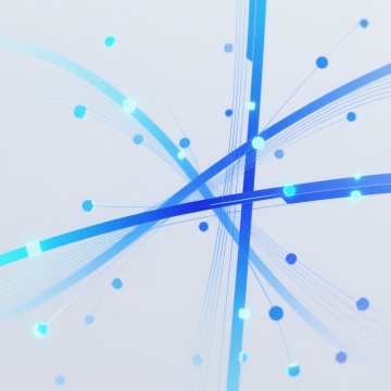 白色背景上,由蓝色渐变线条和发光节点构成的抽象科技感图形,线条呈现出动态的几何交错形态,节点散发着微弱的光晕,整体造型具有未来感和数字化特质,色彩从浅蓝到深蓝自然过渡,线条粗细均匀且富有层次感,节点大小不一地分布在线条的交汇点上,营造出轻盈而精密的视觉效果。