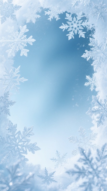 3D渲染风格的山水雪景海报,整体采用纯净的浅蓝色调,柔和的光线从上方照射,营造出宁静清冷的氛围。画面中,连绵起伏的山峦被设计成流畅的波浪形态,表面覆盖着半透明的冰层,冰层下可见细密的纹理,如同冰冻的湖面。山峰呈现出渐变的蓝白色,边缘有细腻的高光,增强了立体感和冰雪的质感。空中点缀着大小不一、形态各异的雪花,有的轻盈飘落,有的静静悬浮,雪花的棱角清晰可见,晶莹剔透。构图上,山峦从画面底部向上延伸,形成自然的视觉引导线,背景是渐变的浅蓝色天空,没有多余的元素干扰,整体简洁而富有设计感,突出了雪花与自然山水的融合,传达出纯净、静谧的冬日意境。