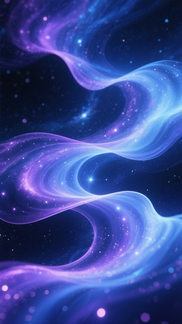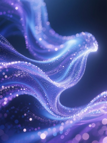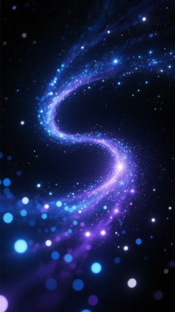 深邃的宇宙背景中,一条由无数闪烁的蓝色和紫色星光粒子组成的螺旋状星云,星光粒子大小不一,疏密有致,呈现出流动感和动态美,部分星光带有柔和的光晕效果,整体营造出神秘、梦幻、宁静而又充满科技感的氛围,色彩以深蓝、靛紫为主,点缀着明亮的蓝白色光点,光影层次丰富,星光在黑色背景上形成鲜明对比,具有强烈的视觉冲击力和空间纵深感。
