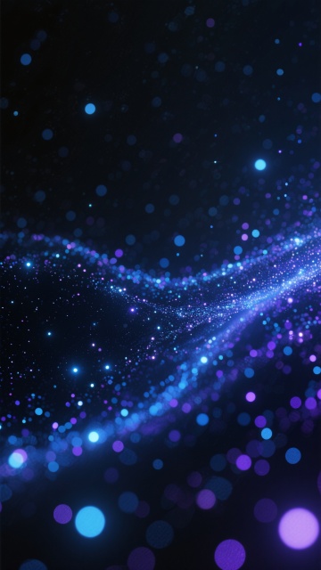 深邃的黑色背景,布满了璀璨的蓝色和紫色闪光粒子,这些粒子大小不一、疏密有致,呈现出流动和飘散的动态感,整体营造出神秘而梦幻的宇宙星空氛围,粒子的光芒柔和且具有层次感,无任何文字和标识元素。