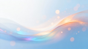 淡蓝色为主色调,其他丰富颜色为辅,包含复杂精致的圆弧、曲线、线条等立体模型元素,透明玻璃质感,发光粒子点缀,适合现代UI界面的浅色丰富背景