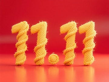 赛博朋克风霓虹灯管打造的3D数字“11.11”,玻璃质感与重拟物设计结合,未来感十足,充满科技与酷炫感,营造双十一促销狂欢氛围。