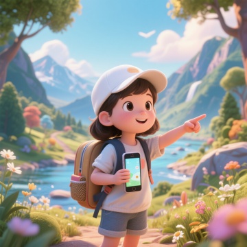 清新卡通插画风,软3D虚拟自然景观,童趣探索之旅。