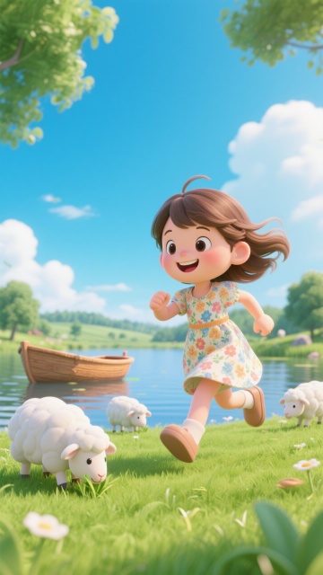 软3D风格的卡通少女与萌犬街头购物,梦幻色彩搭配温馨氛围,充满可爱感与潮流趣味,展现都市生活甜蜜日常。