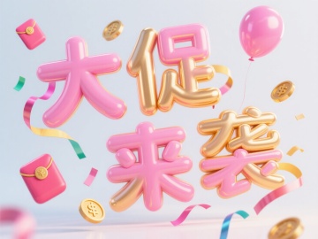3D风格充气大字,色彩鲜艳,红包金币环绕,营造喜庆节日氛围。