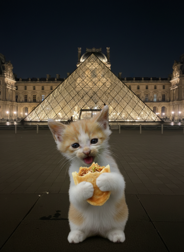 软3D风萌猫戴花环,置身霓虹灯饰的喜庆广场,梦幻光影交织,国庆节日氛围浓郁。