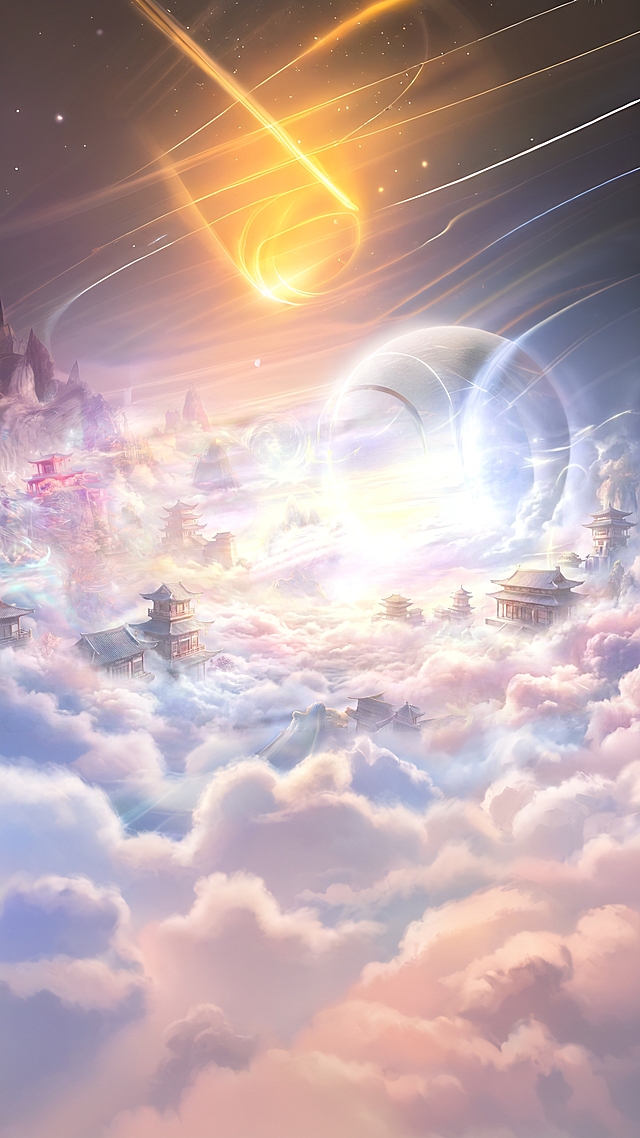九维建筑设定,神女飞天,九维概念设定,仙境,低饱和度,薄荷色调,电影大片,华丽,3D,震撼,宏大场景,九维中国风,光荧斑驳,唯美插画,超级细节,超级繁复,九维云花海空间,古风大秦阿房宫,岩彩板绘,新九维,奢华,闪耀流苏,国风光影,九维粒子,亮片,生物发光粒子,64K高清,远景,虚幻引擎5,古风。画面中没有文字,请生成竖屏尺寸。详情