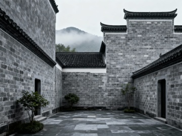竖构图,宋代水墨风格工笔重彩,深秋的江南古刹后院,画面中央是半月形的青石板浅滩,倒映着斜斜掠过的丹枫枝桠,形成破碎却灵动的对称。前景是青苔斑驳的青灰色石阶,不规则的积水洼中沉着几片朱砂色枫叶,边缘泛着冷银色的反光。背景是几株千年银杏,金黄扇形叶片在黛色瓦檐间簌簌飘落,晨雾带着淡青色从飞檐斗拱间漫出,与初升朝阳的暖金交织成缥缈的光幕。左侧一株老梅虬曲的枝干斜插入画,墨色枝干上已缀着几点含苞待放的胭脂红。整体色调以靛青、赭石、泥金为主,笔触既有工笔的细腻勾勒,又有水墨的氤氲晕染,宣纸纹理间透出古旧的绢黄色,垂直的银杏树干与水平的浅滩倒影形成禅意的几何对比,营造出"空山新雨后,天气晚来秋"的空灵意境。