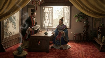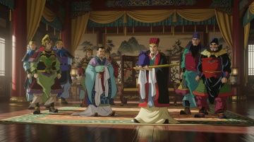 古典中式插画风,水墨山水背景,人物手持折扇,尽显雅致韵味。
