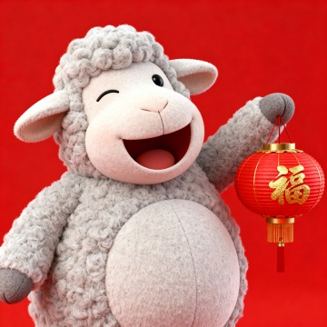 软3D风格的拟人小羊手提购物袋,站在绿意盎然的草地上,头顶云朵化作“11.11”字样,梦幻清新,充满节日购物的可爱氛围。