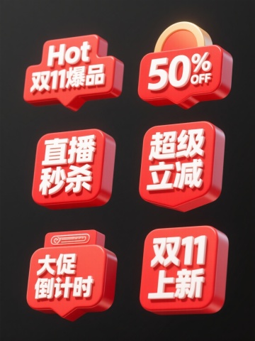 3D重拟物风格,极繁主义构图,金属鎏金质感,红金配色营造浓烈双十一喜庆感,呼应11.11购物节主题。