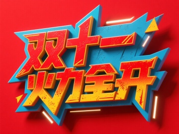 3D立体几何风设计,大字浮雕效果突出“双11火力全开”主题,搭配礼盒元素强化促销感,视觉冲击力强,节日氛围浓厚。