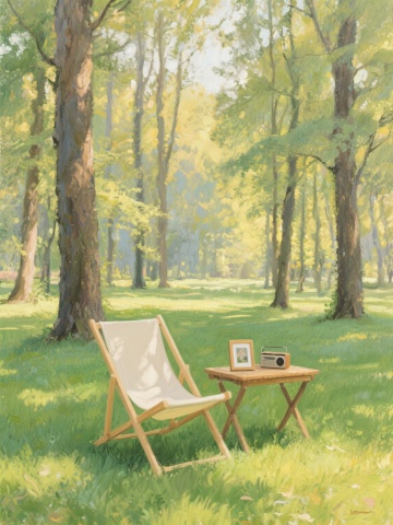 【夏季】远景镜头,青碧色的水彩幻化成厚重的绿纱笼罩画面,深绿与墨绿的梧桐叶层层叠叠,其间点缀着朱红、明黄的荷花与石榴花,露珠在叶片上滚动折射强光,阳光透过繁密枝叶形成星点光斑,色调以浓绿为底,跳跃着朱红与明黄,展现盛夏蓬勃的生命力。