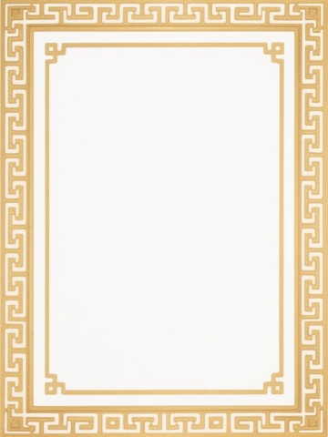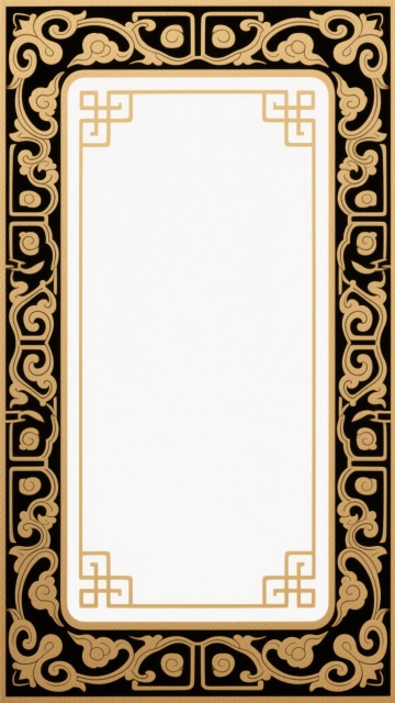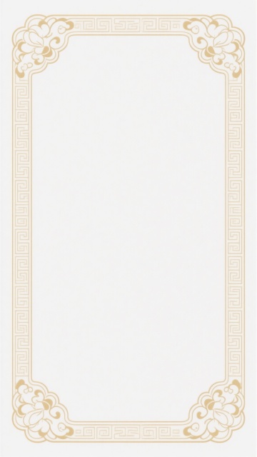 一个带有复杂传统中式纹样边框的白色纯色背景,边框为金色,四角装饰有精致的回纹图案,整体呈现出典雅庄重的中国传统风格,纹样细节丰富,线条流畅,具有浓厚的古典美学气息,适合作为书法、国画或传统元素设计的背景框架。