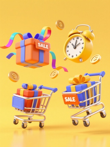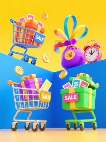 3D轻拟物风设计,促销感十足,购物单与金币元素结合