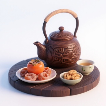 一张具有极简主义风格的茶具摄影海报,画面主体为四个不同样式的黑色茶具,包括一个带有圆点纹理的提梁茶壶、一个带托盘的茶杯,以及另外两个造型各异的茶杯或茶碗,所有茶具均采用哑光黑色陶瓷材质,表面质感细腻。茶具整齐摆放在浅棕色竹制垫子上,垫子纹理清晰可见。茶具旁点缀着几片翠绿的竹叶,增添自然气息。整体构图采用简约对称式布局,主体位于画面中央,视觉层级明确,茶具为绝对视觉焦点。背景为纯白色,光线柔和均匀,从左上方打亮主体,在茶具边缘形成淡淡的高光,底部投射出柔和的阴影,增强立体感。色调以黑白棕为主,色彩和谐统一,营造出宁静、素雅、禅意的东方美学氛围。画面无任何文字信息,信息传达简洁高效,突出茶具本身的设计美感与材质质感,符合追求简约生活美学人群的审美需求。