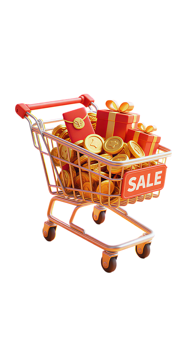 软3D风格购物车满载缤纷日用品,梦幻色彩搭配星光与彩带,营造清新可爱氛围,节日感十足。详情
