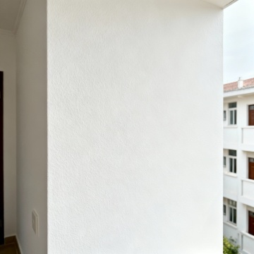 专业的室内装修对比图,左侧墙面未刷底漆,刷深蓝色面漆后颜色斑驳不均,有泛白碱痕和霉点,漆膜粗糙起皮;右侧墙面按“一底两面”工艺施工,深蓝色面漆颜色饱满均匀,质感光滑如丝,中间有清晰垂直分界线隔开。一位身穿工装的装修师傅用手指着两侧墙面对比效果,表情严肃,环境是光线明亮的毛坯房,高清晰度,细节丰富,专业装修场景