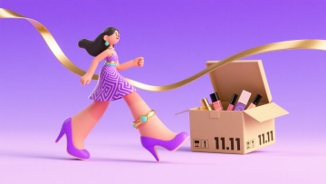 3D重拟物风格的充气数字“11.11”悬浮于空中,搭配金属质感红包与金币,营造出喜庆热烈的双十一大促氛围。