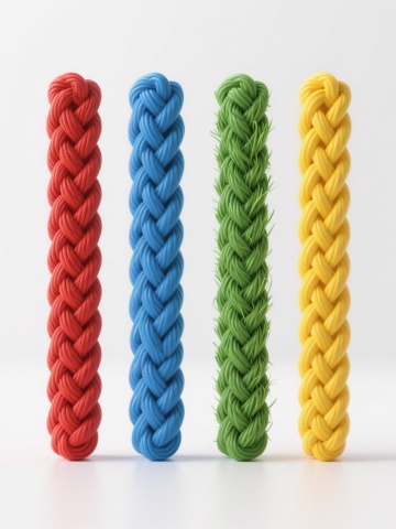 “11.11” 织物风格卡通字体,以彩虹色线缠绕结构,多层布纹扭动如纺织机编织,搭配织布纹理与麻绳图层,手工质感强烈,黄橙渐变背景。